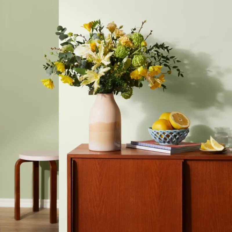 Õienupu õrn roheline. Valgus muudab selle pehme ja maalähedase rohelise olemust. Sellel on rahustav toime, kui seda kasutatakse elutoas või magamistoas.