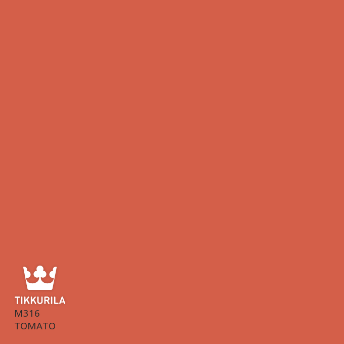 Küps magus tomat ootab korjamist. Tomatipunane sobib nii detailidele kui ka suuremal pinnal. Vali see värvitoon, kui soovid luua oma kodus võimsaid värvielamusi.